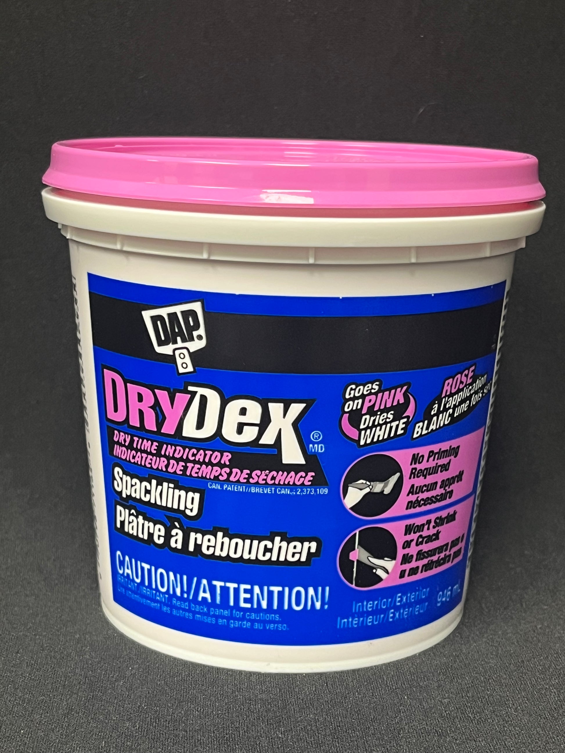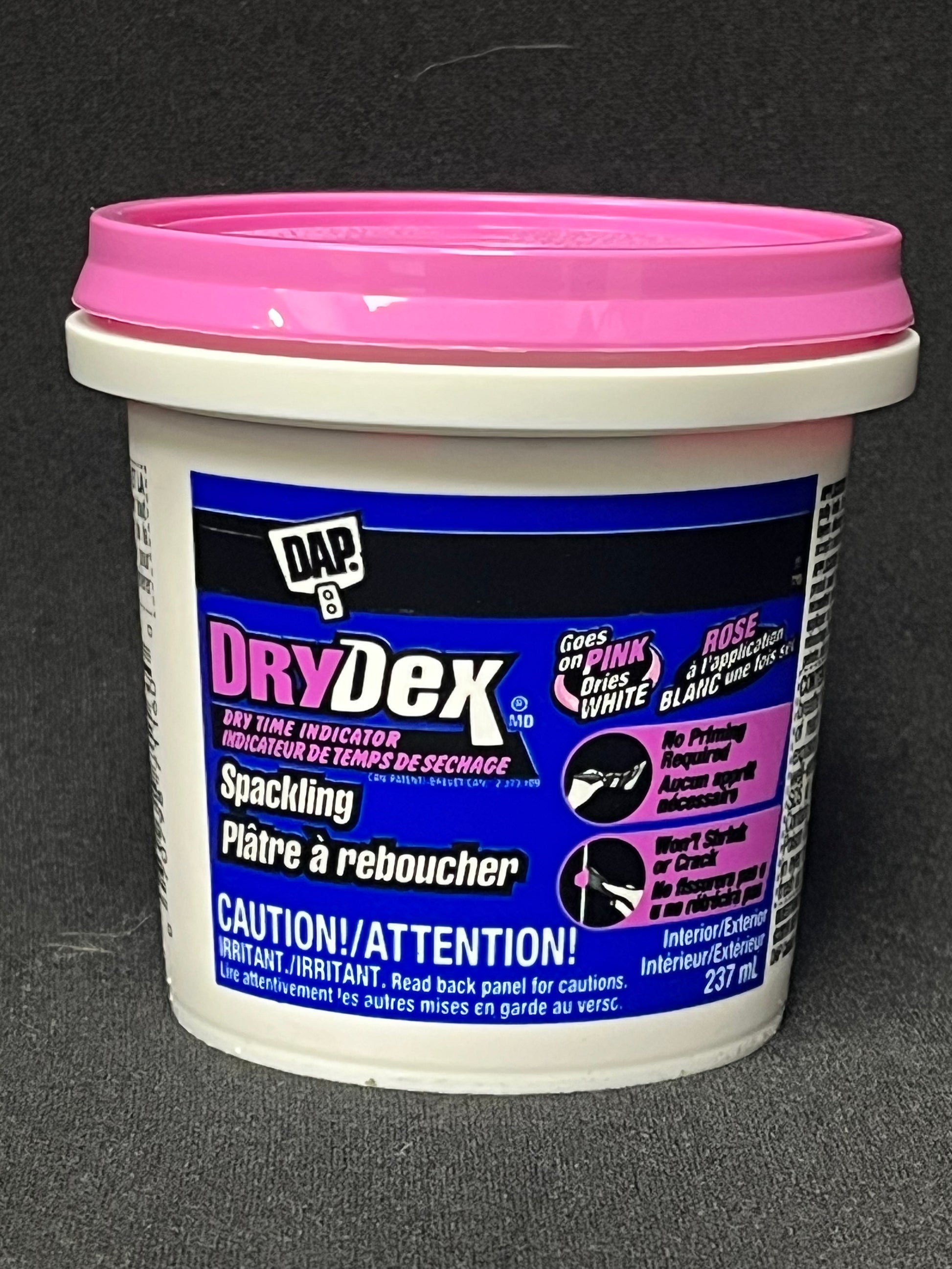 Applies Pink/Dries White. Light Weight Spackling. Interior/Exterior. For finishing and filling. Easily sandable.